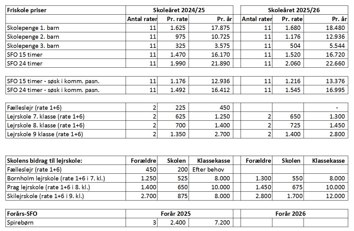 Betaling foregår i rater. Der betales måneden ud, hvis eleven stopper sin skolegang midt i et skoleår.